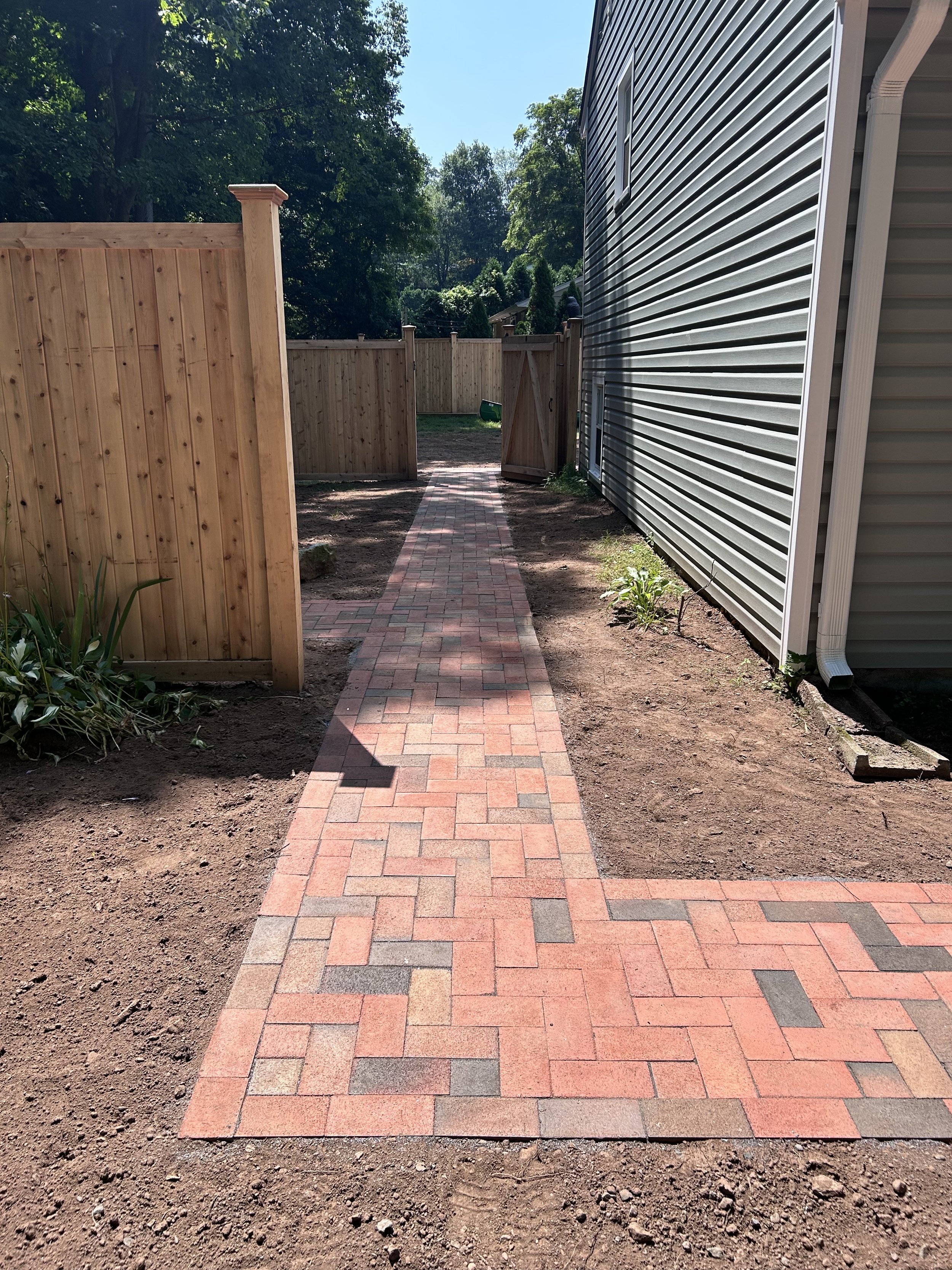 Brick Paver Walkway with Cedar Privacy Fence and Gate - Vernon